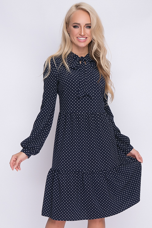 Размер 44, цвет тëмно-синий в белый горошек.